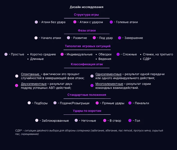 4) Классификацию атак (взаимодействия игроков и результативная последовательность игровых ситуаций);