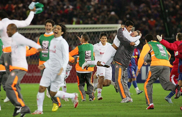 Два будущих форварда «Милана» – Пато и Адриано – и забили в полуфинале «Аль-Ахли» (2:1). Брага так подробно рассказал игрокам о сопернике, что полузащитнику Эдиньо, по его словам, даже снился лидер «Аль-Ахли» Мохамед Абутрейка. Правда, матч все равно получился нервным: игроки «Интернасьонала» мыслями уже были в финале и много ошибались.