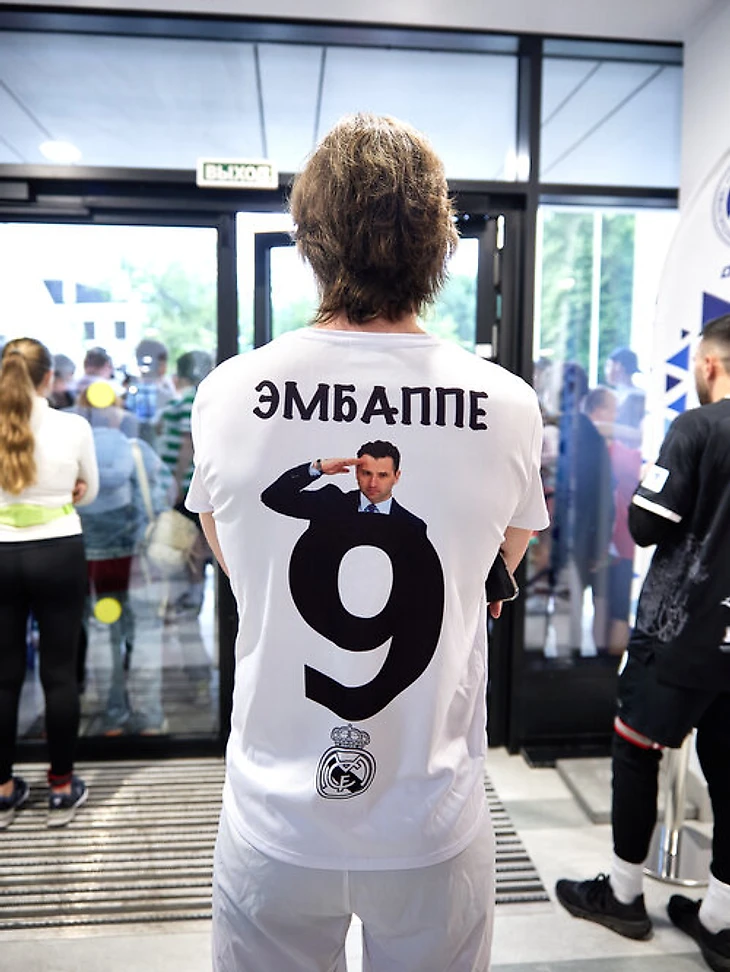 Но самая креативная джерси – у Петра. Спереди – лого «Реала» и фото Килиана Мбаппе, а на спине – надпись «Эмбаппе» и фото Романа Ротенберга.