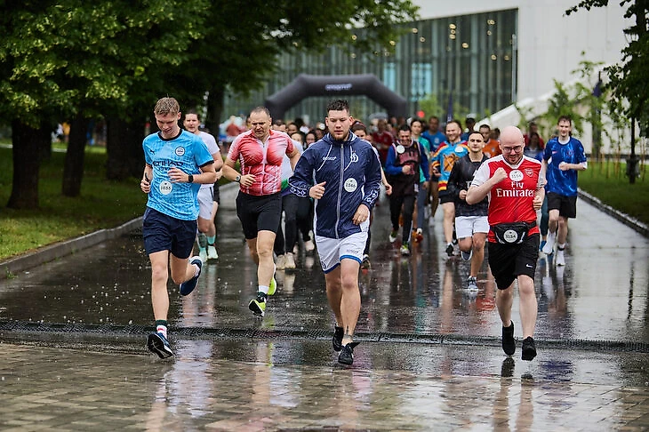 Теперь дружба продолжается на «Джерси-ране» – забеге в формате блоккор: сочетание повседневной одежды с формой футбольных клубов. Все участники приходили не просто в спортивной одежде, а в атрибутике любимых (или необычных) спортивных команд.