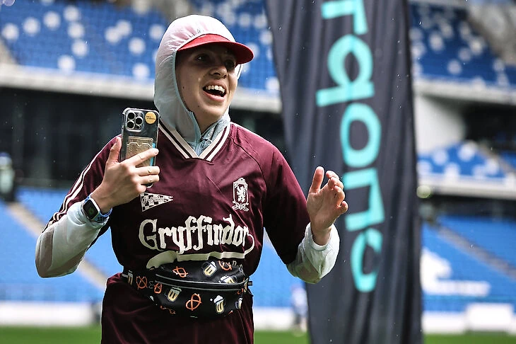 После финиша эмоции совсем другие. Дождь под козырьком стадиона совсем не чувствовался. Болельщики «Динамо» фотографировались и скандировали что-то на динамовском, фанаты «Локомотива», кажется, были повсюду. Мы с другими участниками забега смеялись, сравнивали результаты и ждали настоящих спортсменов – тех, кто осилил пятерку.