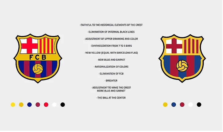 Подкрутить лого под требования цифровой эпохи хотели в «Барсе» еще в 2018-м. В числе изменений: убрать акроним FCB, удалить черный внутренний контур, уменьшить количество полос, центрировать мяч и откалибровать баланс цветов. Но сосьсос взбунтовались. И все оставили как есть.