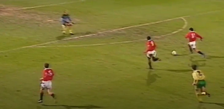 37 тур, стадион Кэрроу Роад в Норидже готов принимать лидера в лице Манчестер Юнайтед. В случае победы хозяева возвращались бы на первую строчку, за пять туров до конца. Майк Уокер решил сыграть с высокой линией обороны и ловить соперников на офсайде. Это решение стало роковой ошибкой, так как он недооценил быстрые фланги Юнайтед в лице Гиггза и Канчельскиса, которые раз за разом открывались под передачи из глубины и именно они забили первые два гола, после выходов один на один с голкипером Норвича Брайаном Ганном. Третий гол, после блестящего сольного прохода Пола Инса, забил Эрик Кантона, зимой перешедший в стан «дьяволов» из Лидса. На момент третьего гола шла 21 минута матча и результат был практически предрешен. Норвич хватило лишь на гол престижа и итоговое поражение 3:1 увеличило отставание от лидера на 4 очка.