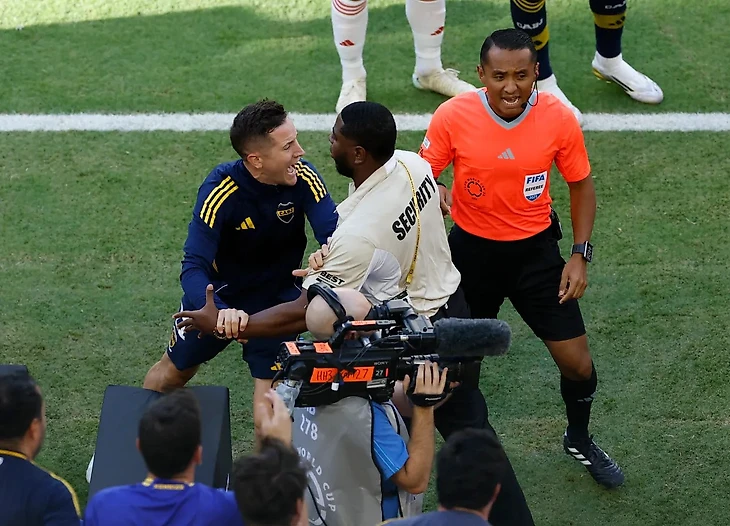 Инцидент произошел как раз перед перерывом. Судья Сесар Артуро Рамос остановил игру, чтобы пересмотреть эпизод между защитником Boca Карлосом Паласиосом и Николасом Отаменди. В итоге мексиканский арбитр назначил пенальти, а разъяренный Эррера, которого заменили из-за травмы, попытался броситься на него, обойдя охрану и нарушив протокол. Его агрессивные действия побудили охрану вмешаться, и арбитр Рамос немедленно показал полузащитнику «Боки» красную карточку.