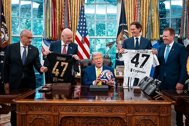 Там же был Джанни Инфантино – подарил футболку КЧМ, а Элканн – мерч «Ювентуса». На обоих был 47-й номер – указание на то, что Трамп – 47-й президент США.