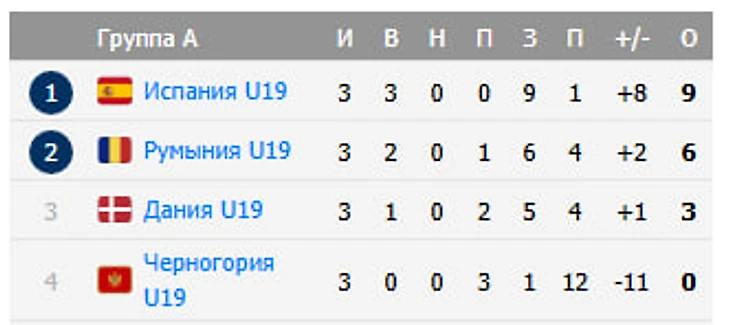 Турнирная таблица группы A