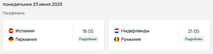Расписание полуфиналов. Время московское