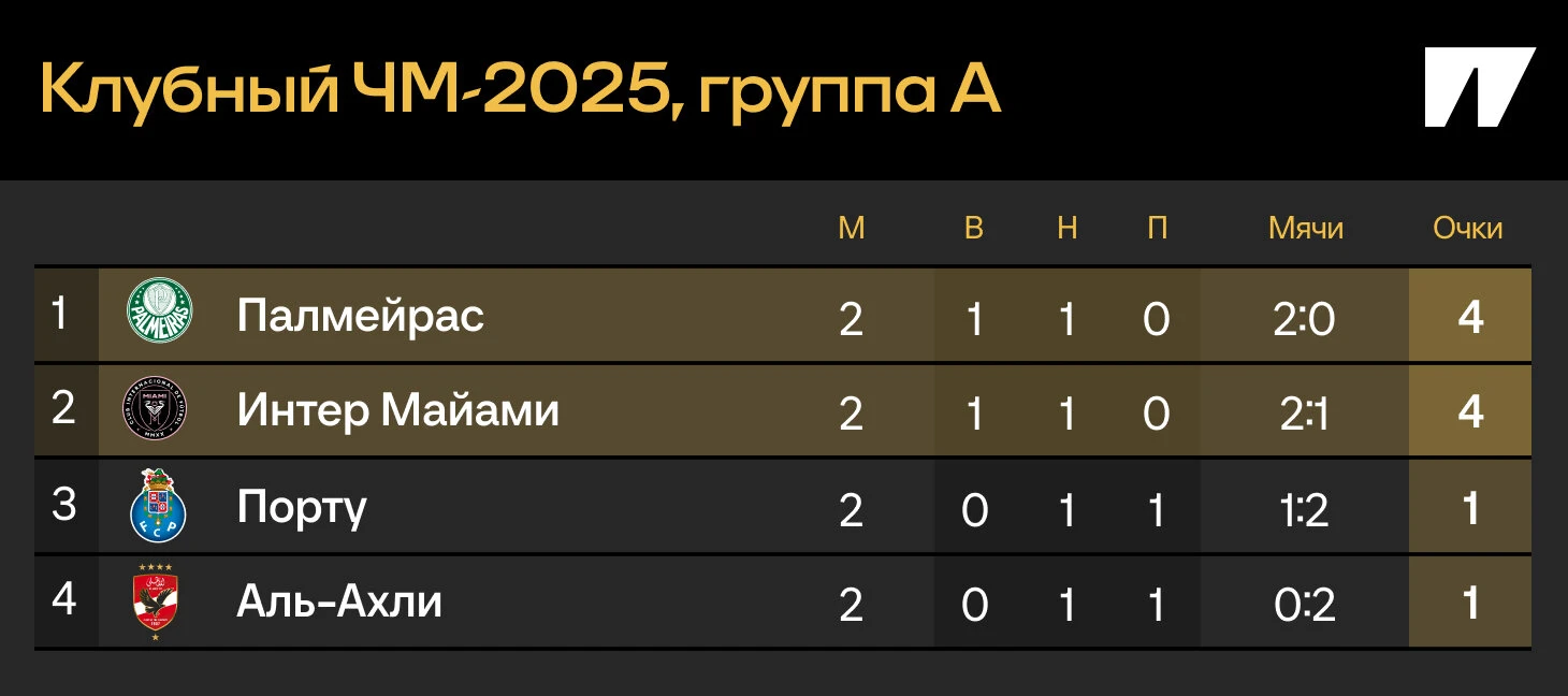 В последнем туре – битва за лидерство против «Палмейраса»: у них по четыре очка. «Порту» и «Аль Ахли» набрали только по одному и рискуют вылететь. Ничья американцев и бразильцев между собой – и они вместе шагают в 1/8 финала. Вероятность растет.