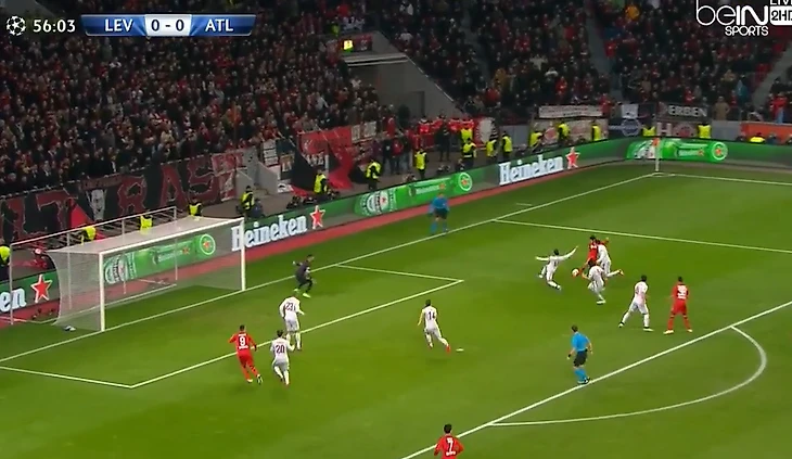 В главном еврокубковом турнире «аспириновым» удалось стать выше «Зенита» и «Бенфики», а «Монако» обогнало черно-красных только на 1 балл в итоговой таблице группового этапа. На стадии 1/8 финала жребий указал в соперники Чалханоглу и Ко мадридский «Атлетико». Испанцы выиграли свою группу с 13-ю очками и представлялись фаворитами противостояния с учетом предыдущего розыгрыша. Первая встреча была назначена на 25 февраля. Почти 30 тысяч зрителей разместились на «Бай-Арене», ожидая стартового свистка Павела Краловца. Тренер хозяев Роджер Шмидт выставил следующий стартовый состав: