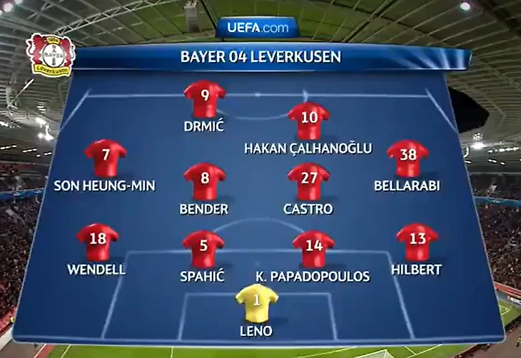Чалханоглу разместился на номинальной позиции 10-ки, с перспективой выдвижения вперед в качестве второго форварда. Сон слева и Белльараби справа должны были совершать скоростные проходы, разрезая фланги «матрасников», где играли не самые быстрые футболисты. Сзади Хакана поддерживали Бендер и Кастро, а последний редут был за Спахичем и Пападопулосом. Со старта стало понятно, что игроки заряжены на результат: 6 и 7 минуты принесли обмен ударами в сторону ворот.