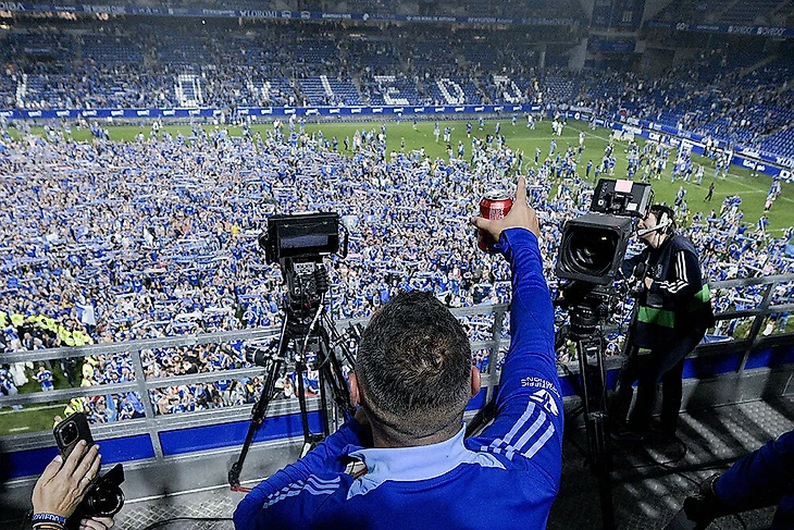 Счастье и внутри, и снаружи стадиона: вживую игру смотрели даже те фанаты «Овьедо», которые не смогли купить билет.