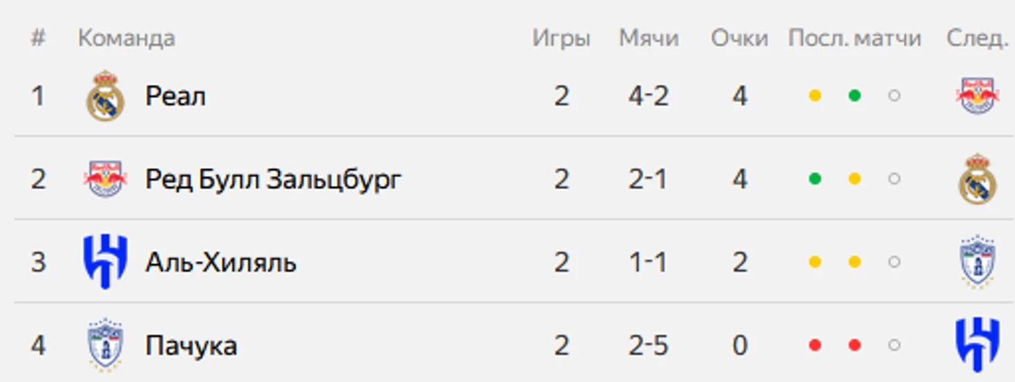 - результативная ничья с “Реалом” Мадрид при условии, что “Аль-Хиляль” выиграет свой матч с разницей в один мяч, забив голов не более чем РБ в параллельной встрече,