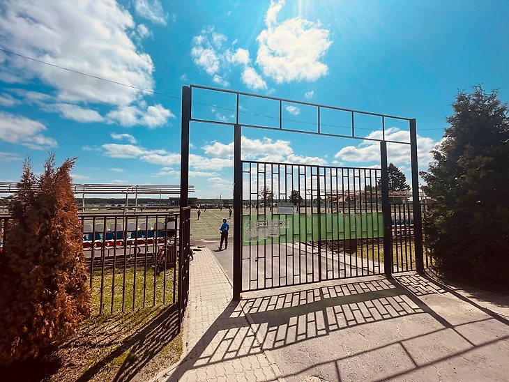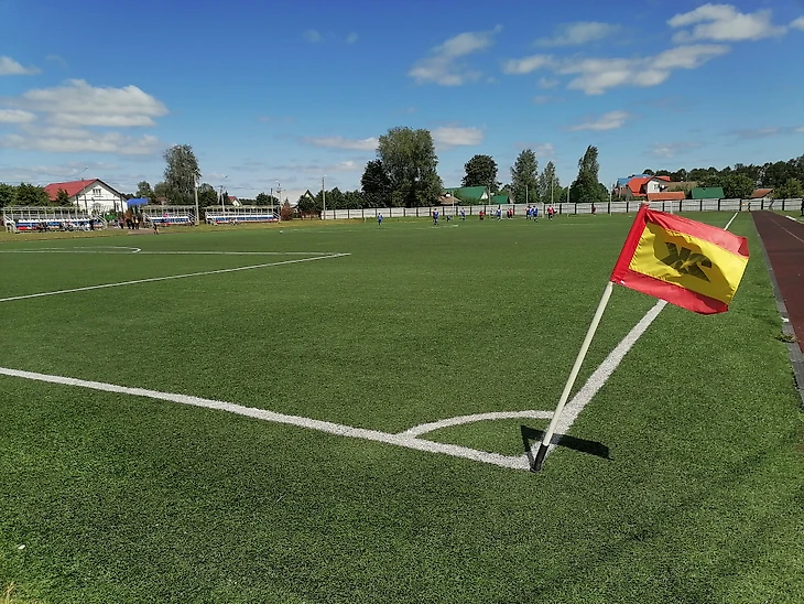 Стадион у нас, правда, весьма скромный - скорее, просто футбольное поле, но всё же :)