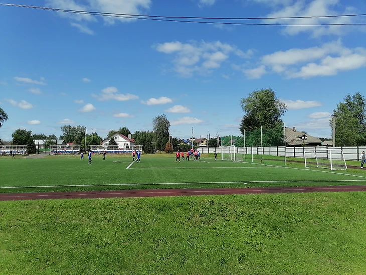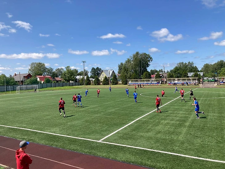 Водная часть пути пройдена, едем на стадион, где в рамках Чемпионата Ярославской области среди Муниципальных районов встречаются команды из Мышкина и Любима🏟.