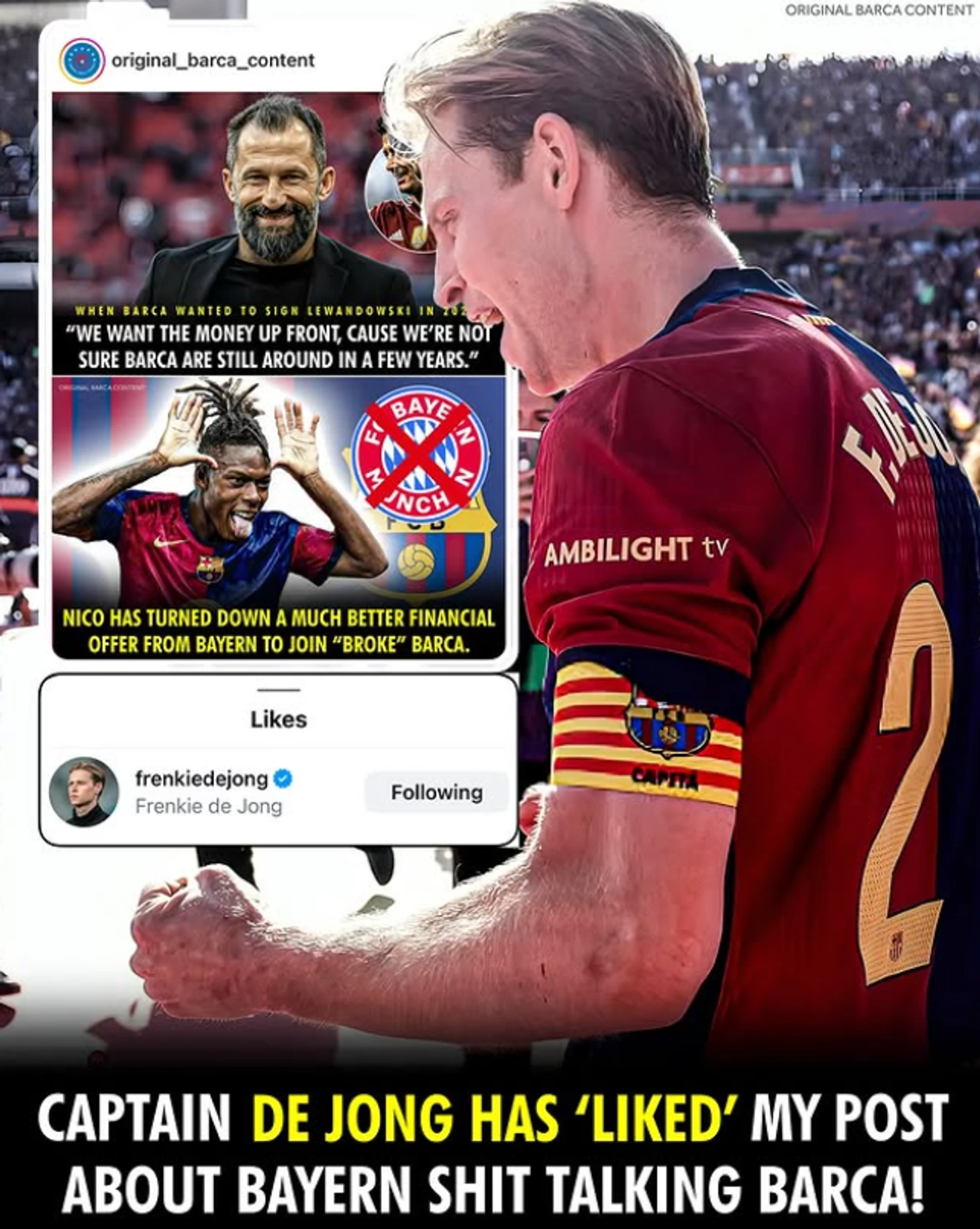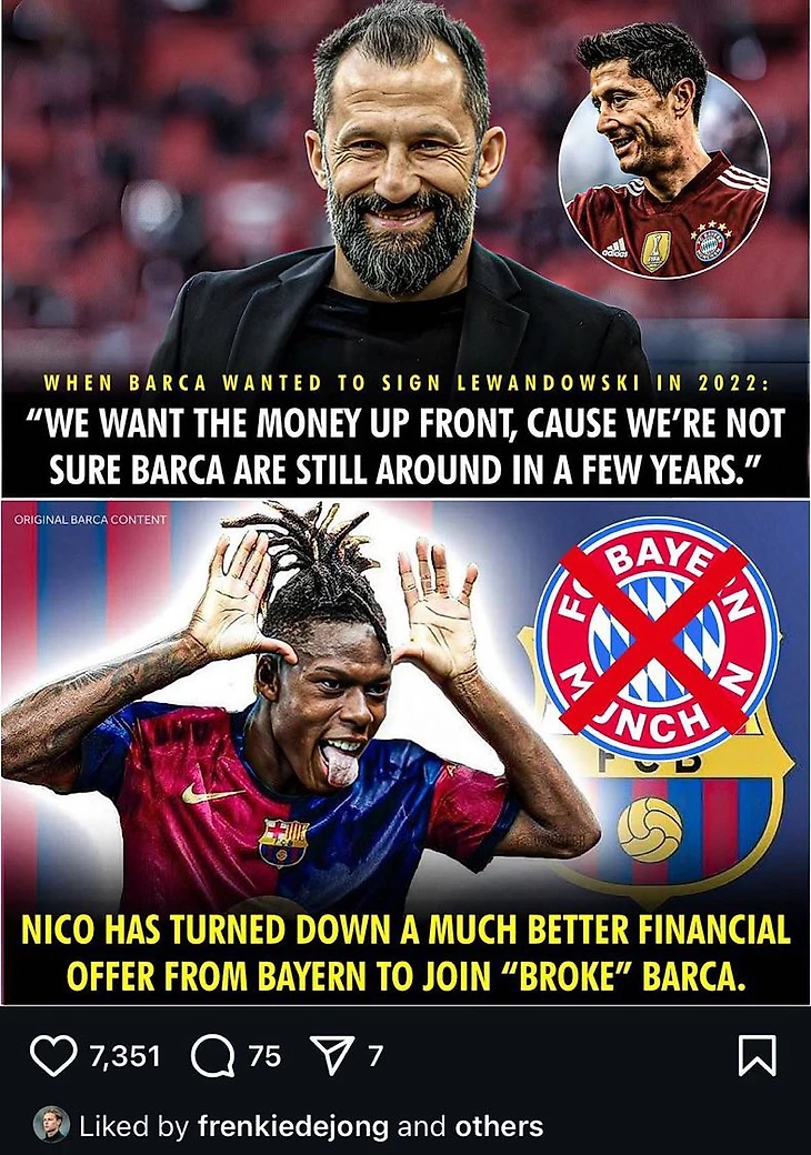 Де Йонг лайкнул фейк, высмеивающий «Баварию». Пост о трансферной саге Нико Уильямса