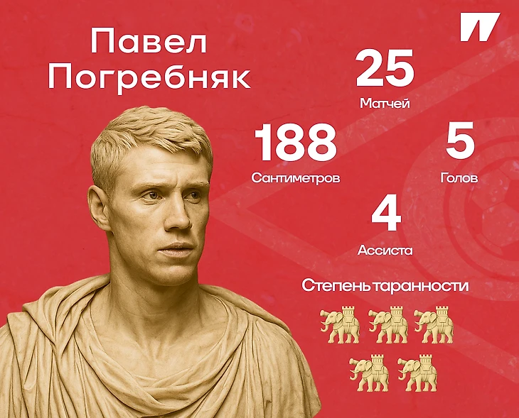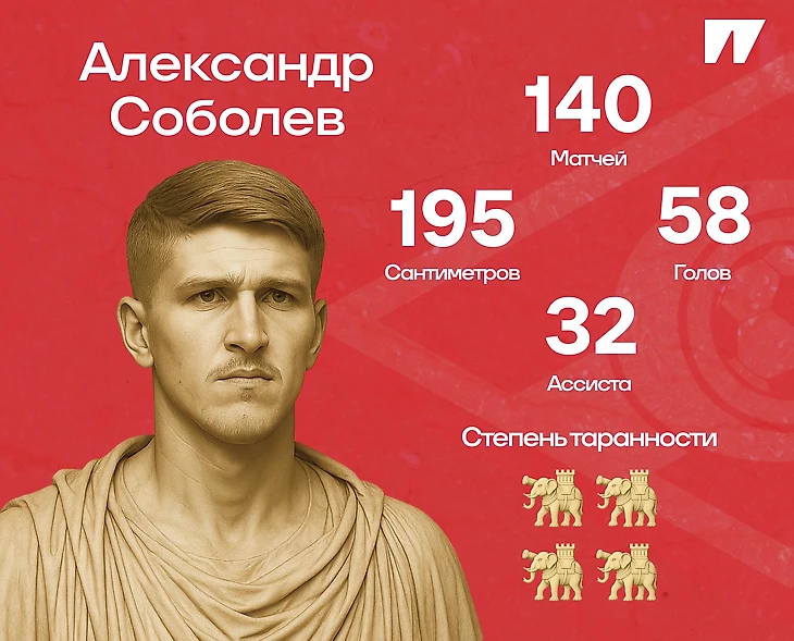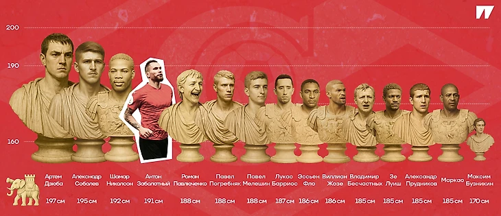 А сколько таранов было в «Спартаке» до Заболотного и насколько он серьезный таран по сравнению с остальными? Если брать центральных нападающих с ростом от 185 сантиметров и выше, то Заболотный попадает в топ-4. Выше него только Дзюба, Соболев и Шамар.
