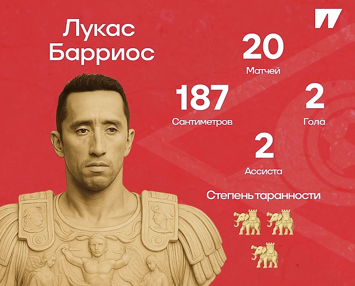 Барриоса сложно назвать тараном или столбом, но нападающим он точно был рослым. Некоторые источники даже оценивают его в 189 сантиметров, но российская статистика измеряет на два сантиметра ниже.