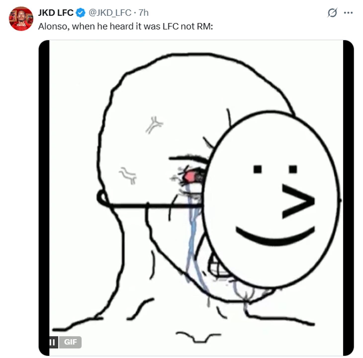 В комментариях под роликом фанаты шутят: «Алонсо когда узнал, что Фло выбрал «Ливерпуль», а не «Мадрид».