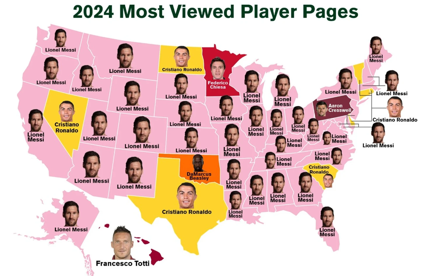 Для меня в плане популярности чуть релевантнее данные Google Trends. Аудитория шире все-таки у Гугла. И вот там Роналду почти во всех штатах (кроме Флориды и чего-то еще одного) обходит Месси.
