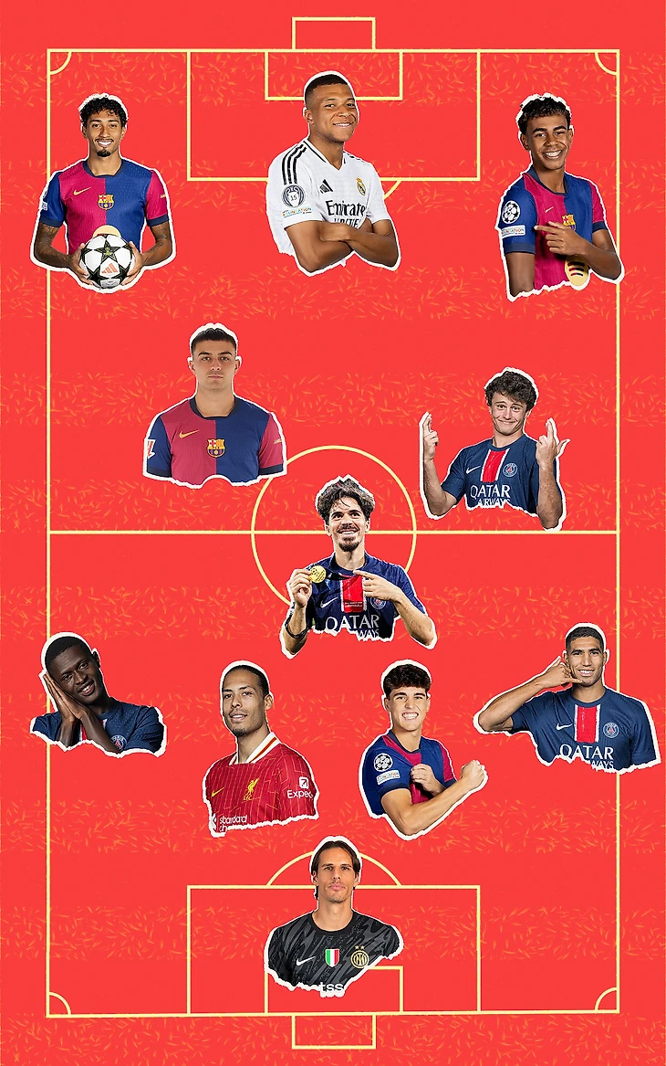 – По четыре игрока из «ПСЖ» и «Барселоны», один представитель от «Реала», «Интера» и «Ливерпуля».