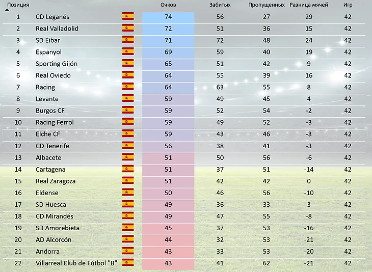 Самая напряженная борьба в рамках одного сезона была в «ЛаЛига 2» в 2023 году. Сразу 7 команд решали судьбу повышения в последнем туре.