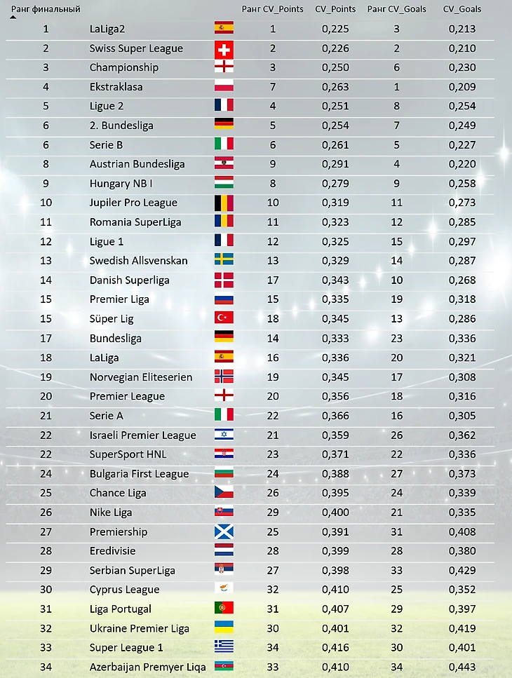 Самые предсказуемые и самые конкурентные лиги: рейтинг на основе турнирных таблиц