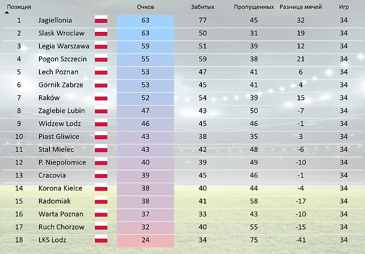 Среди высших лиг наибольшая плотность в турнирной таблице была в Польше в 2023 году. Здесь было 4-6 претендентов на чемпионство за несколько туров до конца.