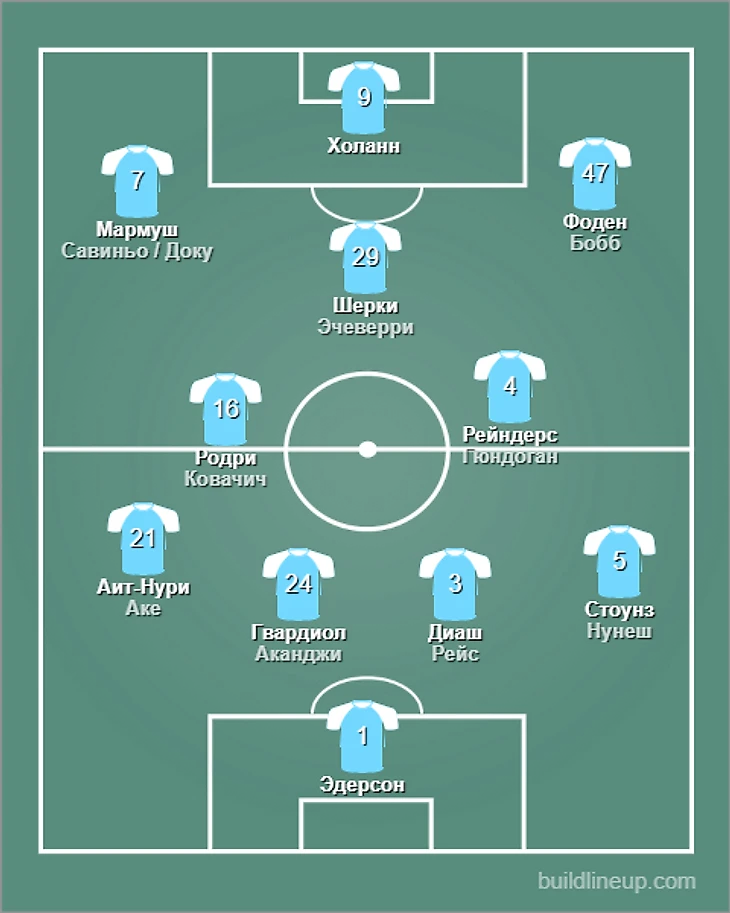 На флангах атаки конкуренция не менее жесткая. Доку, Савиньо, Бобб, Макети, Эчеверри, а также Фоден, Мармуш и Бернарду — все они могут закрыть эту зону. Однако для последних троих это уже не профильная позиция, что снижает их эффективность.