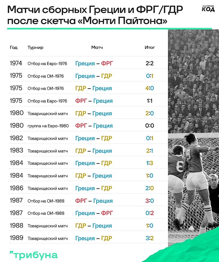 Вот статистика очных встреч до того, как в ФРГ показали скетч «Монти Пайтона»: