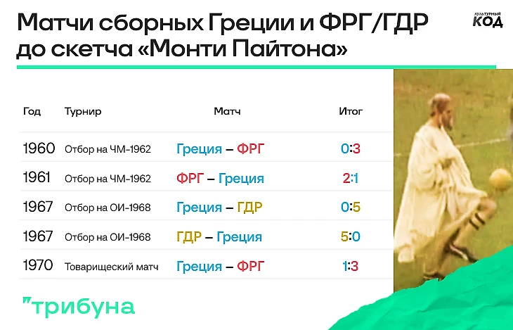 Скетч создавался в начале 1970-х. А как играли в реальности между собой немцы и греки того времени?