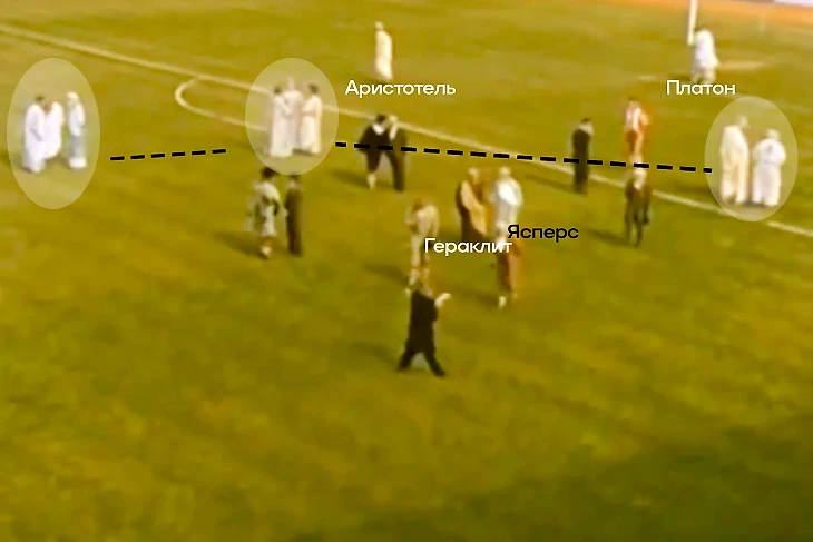 Расстановка игроков (или философов? хотя, что наша жизнь? – игра!) на футбольном поле перде стартовым свистком выглядела следующим образом: