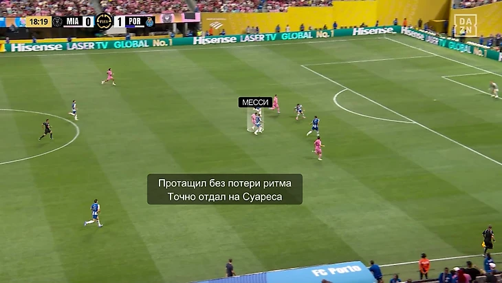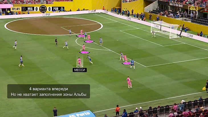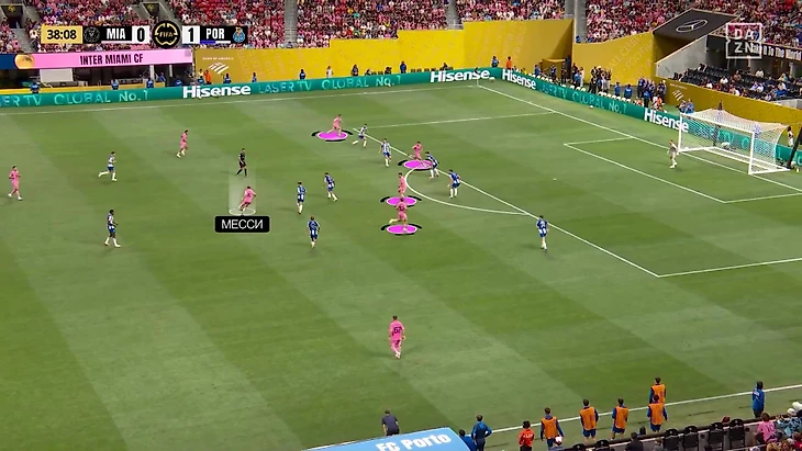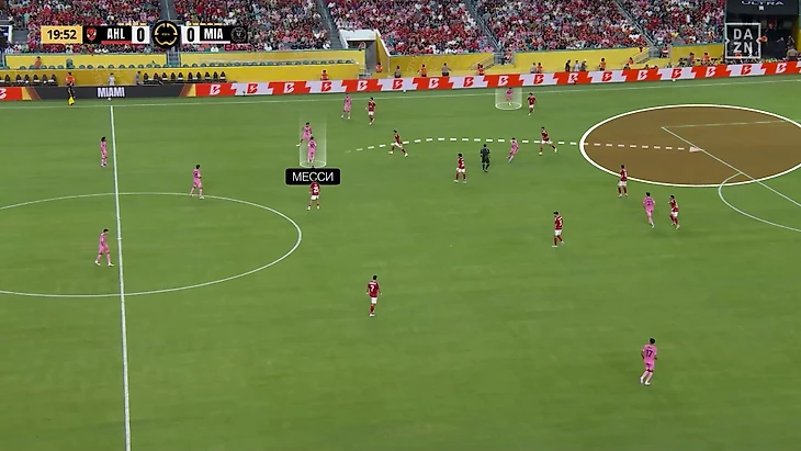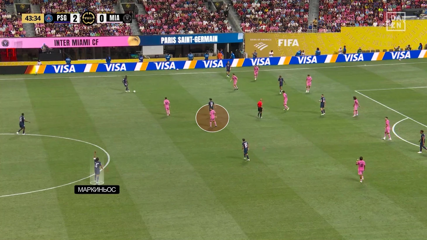 Ожидаемо давление сыпалось именно через пассивность Месси и попытки окружающих адаптироваться. Например, Лео забывает прессинговать защитника, но в то же время бросает опорника – кто-то должен включаться за него, освобождается зона для развития атаки.