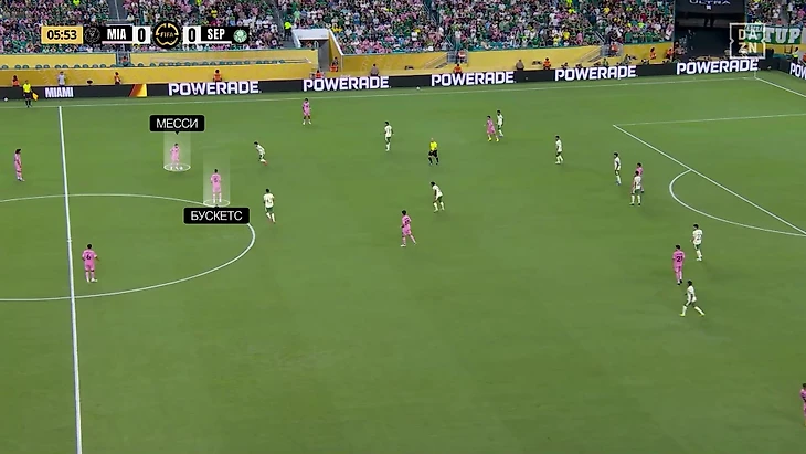«Интер Майами» весьма далек от описанного шаблона. У Маскерано просто не было инструментов. Суарес не способен дать объем Альвареса. Бускетс – медленный. Серджи все еще блестяще читает эпизоды при обороне, но режим, в котором надо выдергиваться и метаться, размывает его сильные стороны. Федерико Редондо старался, но этого мало.