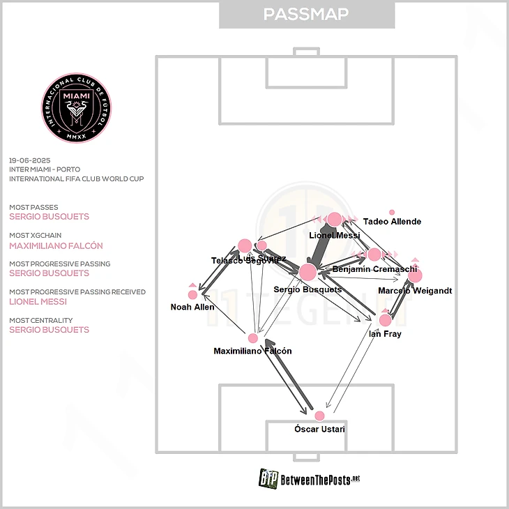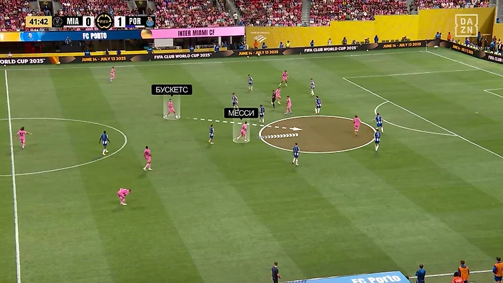 Бускетс управлял игрой в первой стадии. Самый частый вариант развития – поиск Лео.
