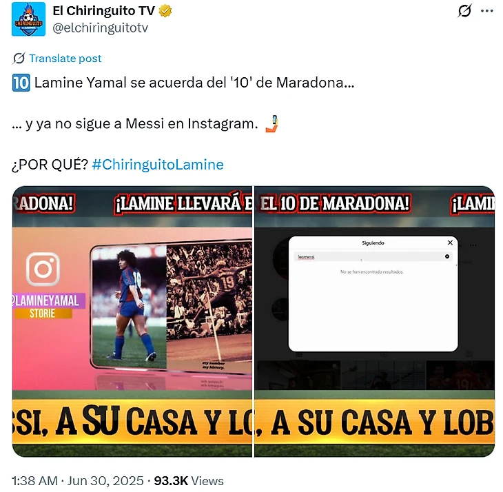 Ямаля, разумеется, быстро обвинили в неуважении к Лионелю Месси – пожалуй, главному обладателю «десятки» в «Барсе». Журналисты El Chiringuito TV даже выяснили, что парень не подписан на аргентинца в соцсетях, они задались вопросом, почему Ламин не выбрал Лео для анонса смены номера.