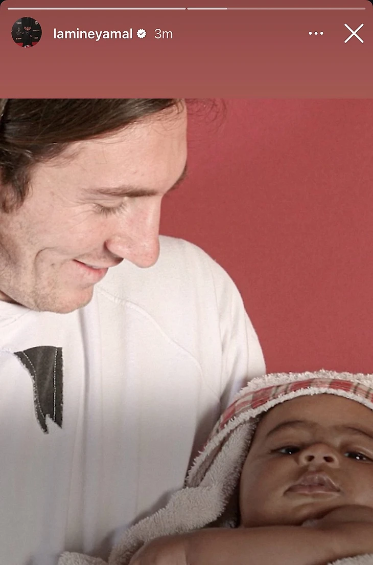 Наконец очередь дошла до Лео, тут обошлось без футболок с культовыми номерами – разве мог Ламин выбрать другое фото?