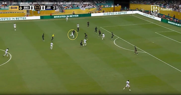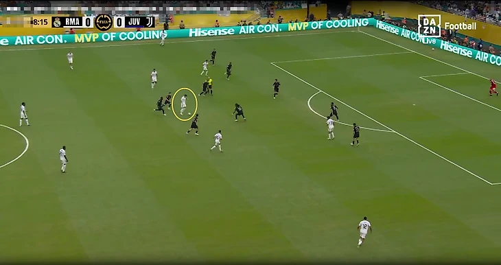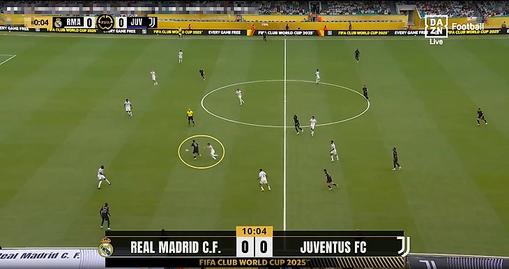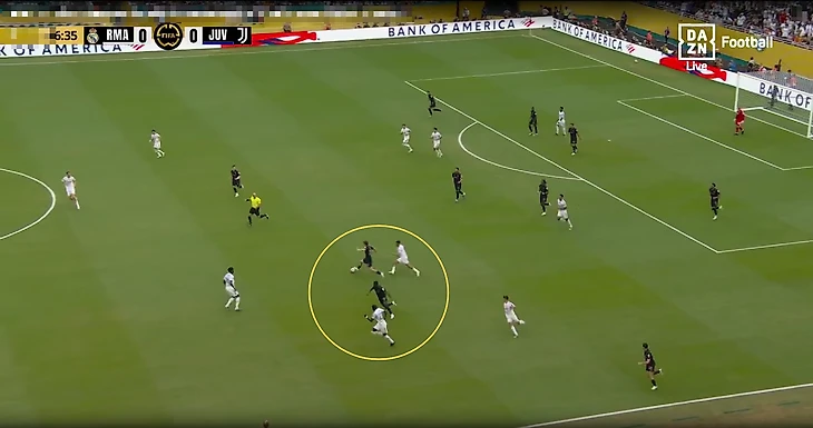 «Ювентус» старался действовать плотно. В некоторых ситуациях благодаря этому между линиями оставалось меньше свободного пространства для игроков «Реала». Из-за этого часто можно было наблюдать ситуацию, когда несколько полузащитников «Мадрида» (особенно Арда Гюлер) опускались к центральным защитникам для помощи в начальной стадии атаки.