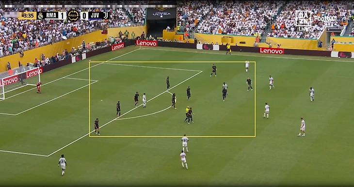Характерной чертой стиля Игора Тудора является интенсивный персональный прессинг. Против «Реала» хорватский тренер отказался от базовой идеи. «Ювентус» не встречал соперника высоко: PPDA = 29.0 (чем выше показатель, тем менее интенсивный прессинг). Для сравнения: у «Мадрида» этот показатель был равен 10.8.