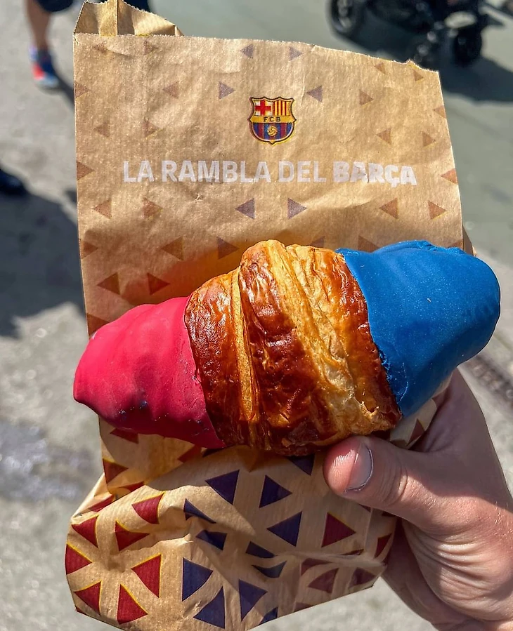 Круассан в цветах Барсы из клубного кафе, не из пластика)