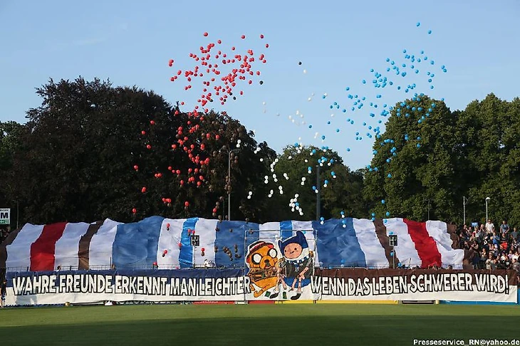 Cовместный перформанс ультрас «Бабельсберга» и «Санкт-Паули» в честь многолетних дружеских отношений Filmstadt Inferno и Ultras Sankt Pauli.