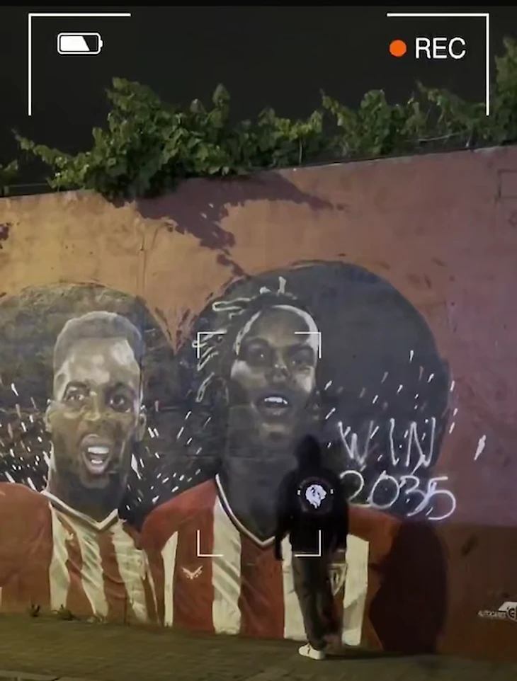 О продлении «Атлетик» объявил роликом с отсылкой. Мужчина в клубной толстовке написал на мурале с изображением братьев Нико и Иньяки Уильямсов – «2035».