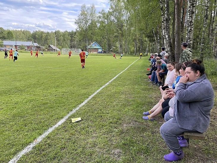На следующий день я получил отпуск от родительских обязанностей и посетил два матча, которые игрались параллельно в расположенных рядом точках – Копнино и Красной Горбатке. Копнино чем-то похоже в футбольном смысле на Купреево – тоже небольшой посёлок с сильной командой под названием «Колос», но если Купреево бьется за лидерство в высшем дивизионе, то Копнино – в следующем. И, как и в Купреево, приехал второй лидер – «Рубин» (Балакирево), совершавший чуть ли не самый дальний в области выезд– 253 километра.