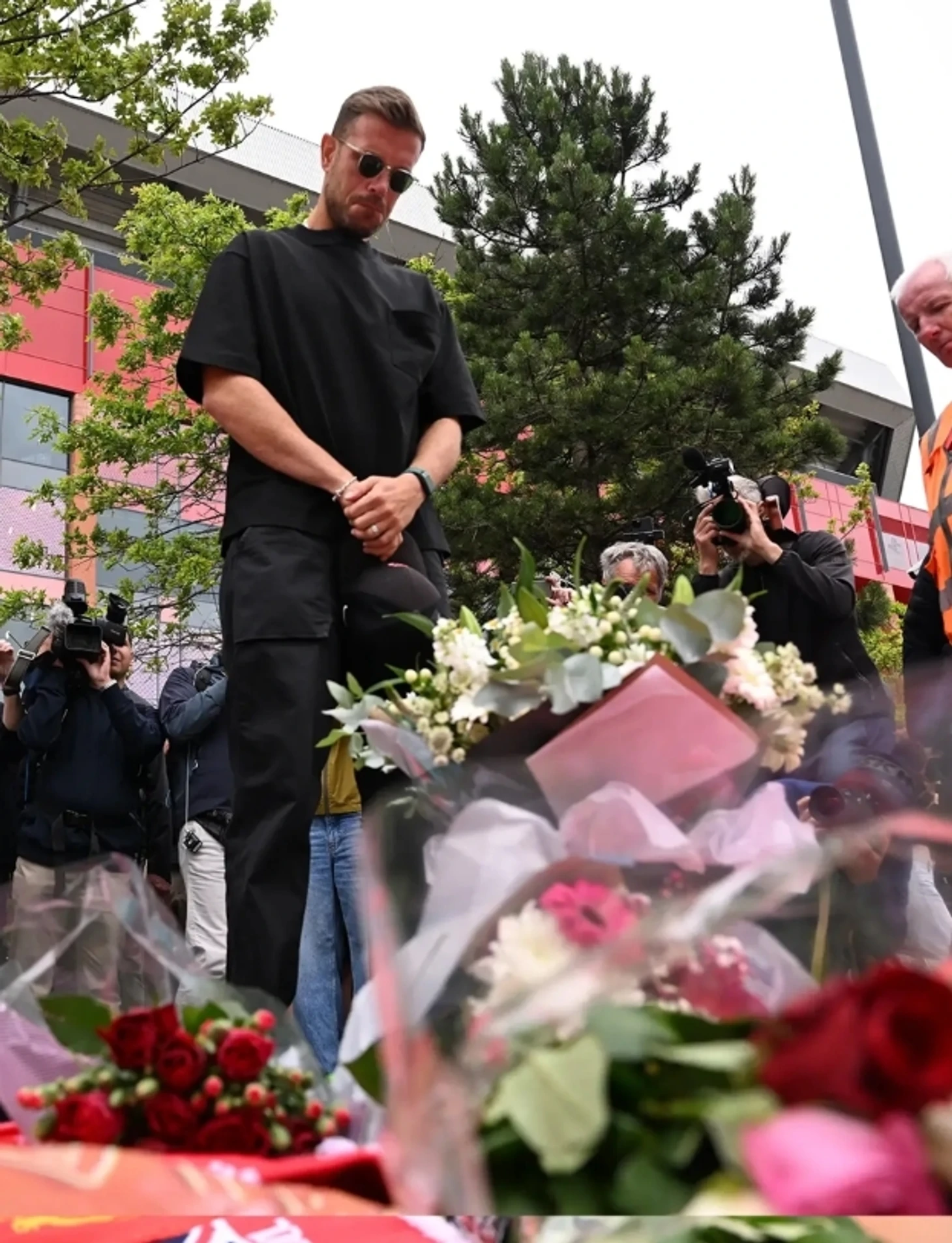 Джордана можно было увидеть стоящим среди цветов и подарков, которые болельщики разложили перед стадионом.