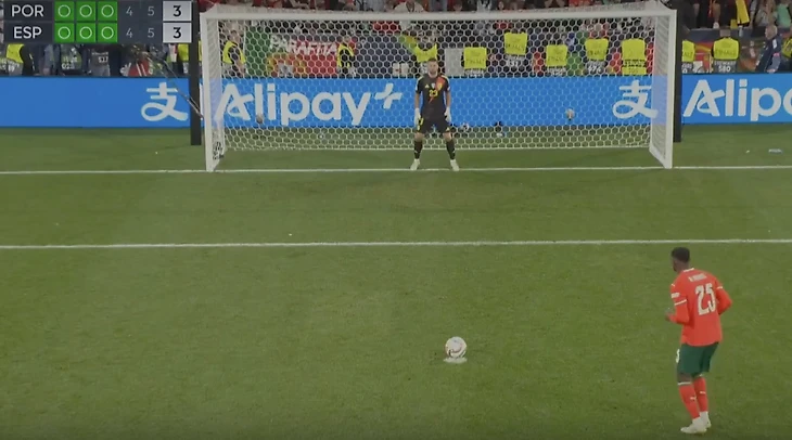 Разбег под левую, удар левой в противоположный угол. Унай смог угадать, но не спасти - 6:5 в пользу номинальных хозяев. Дальше вытащил Кошта, а Невеш подтвердил класс игроков в форме Puma. Португалия с Нуну в составе - чемпионы!