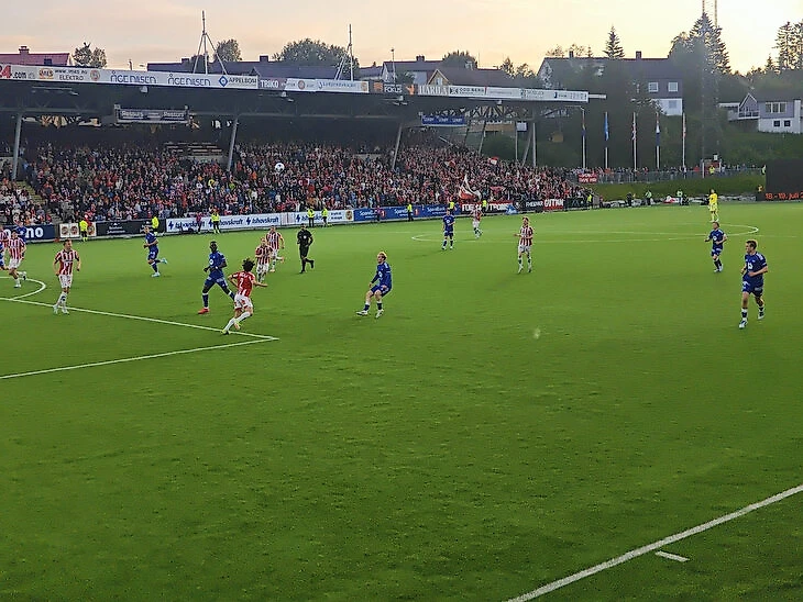 Самый солнечный ночной матч – в Норвегии. На часах 22:00 по местному, а солнце так и не зашло за горизонт.
