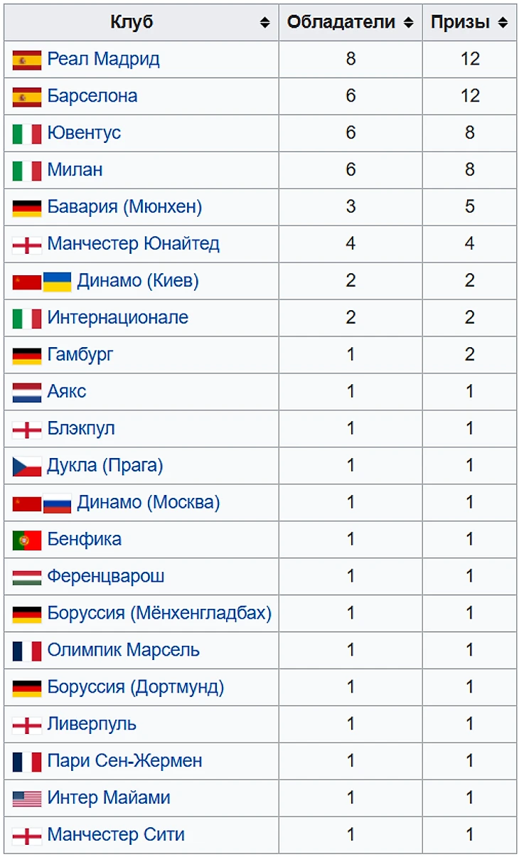 «Манчестер Сити» стал 22-м клубом в истории, футболист в составе которого выиграл Золотой мяч. Рекордсменами среди клубов являются «Реал» и «Барселона» – по 12 наград.