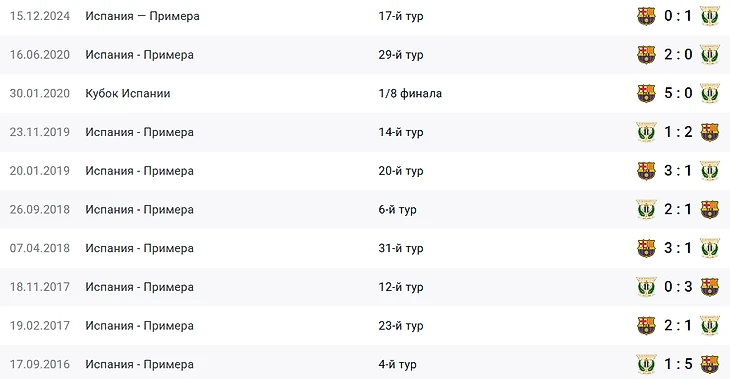 @ 15 декабря 2024 – «Барселона» впервые в истории не забила «Леганесу» и впервые проиграла ему на своем поле.