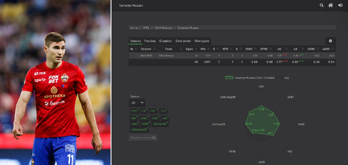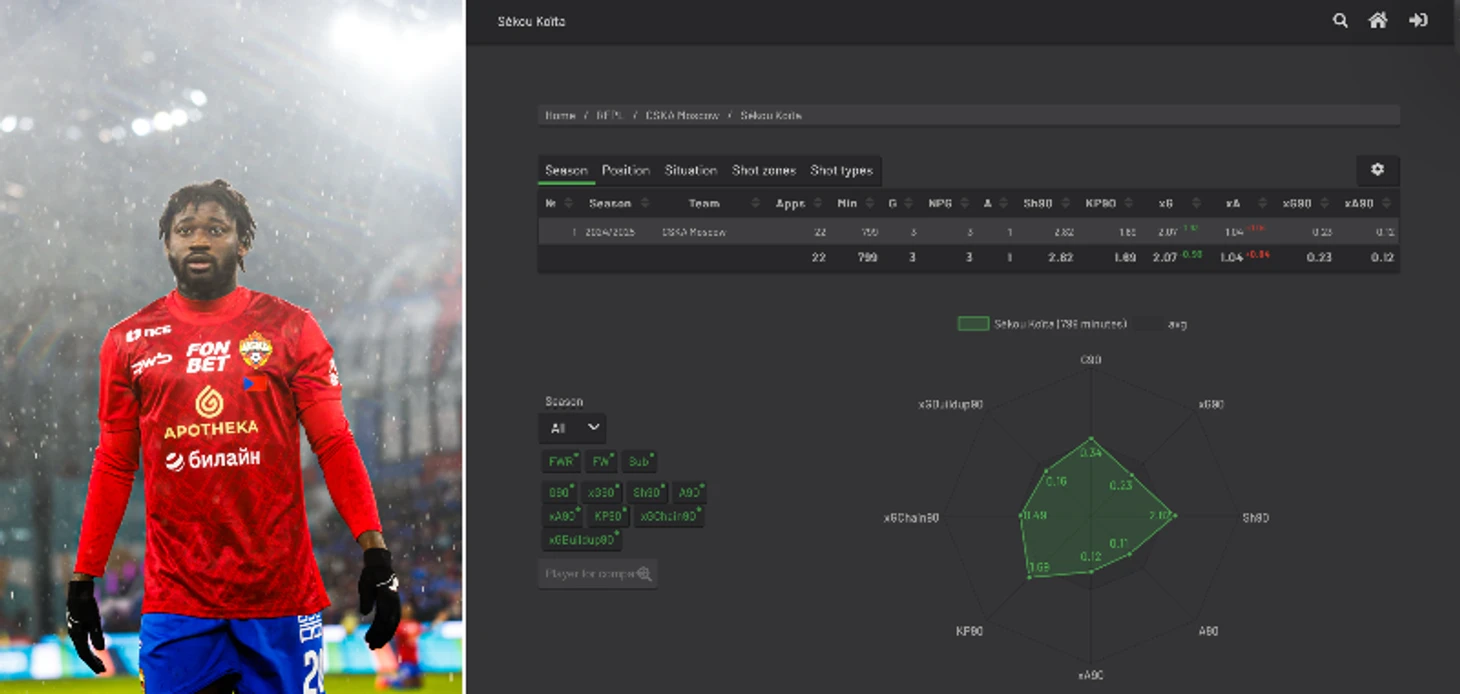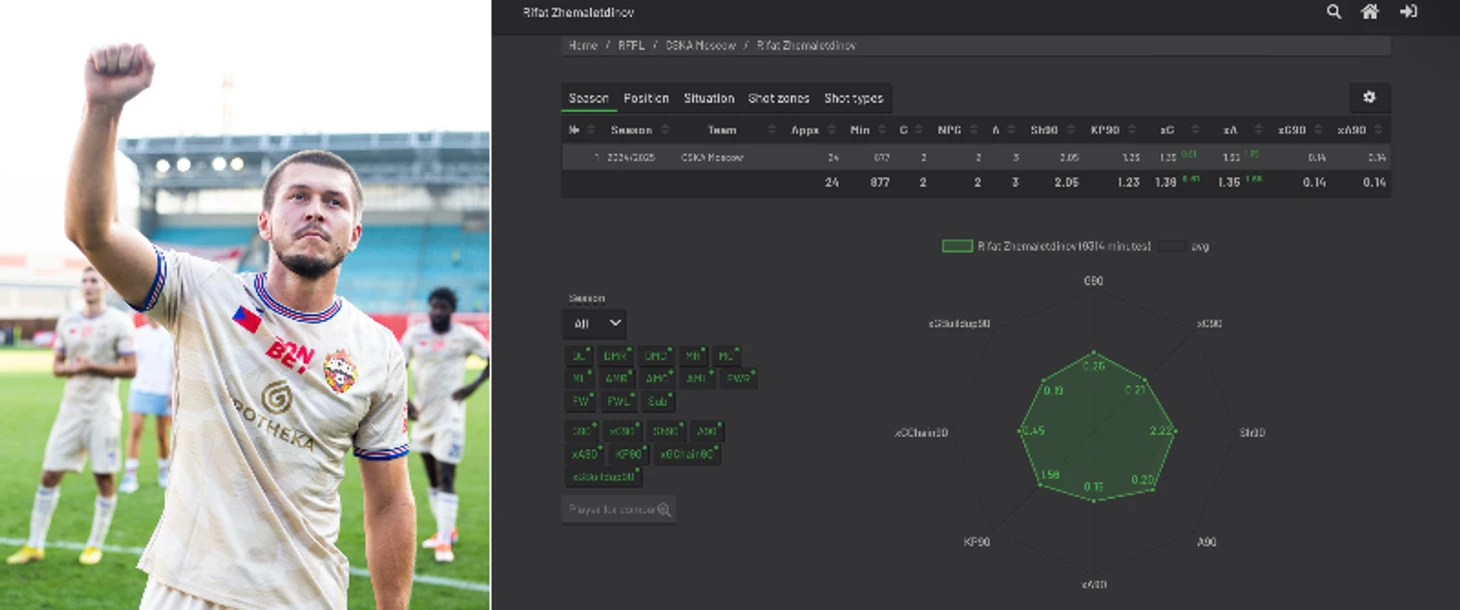 Всем привет! Продолжаю разбирать прошлый сезон ПФК ЦСКА. В преддверии Суперкубка хотелось бы разобрать каждого игрока команды, теперь очередь дошла до полузащитников и нападающих. В данной статье на основе данных и собственных ощущений попробую выставить оценку каждому игроку и поразмышлять о его будущем.