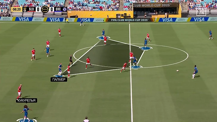 Против «Фламенго» Палмер стартовал на правом фланге в 4-2-3-1 – как в первом сезоне в «Челси». Против «Бенфики» вообще вышел на левом краю.
