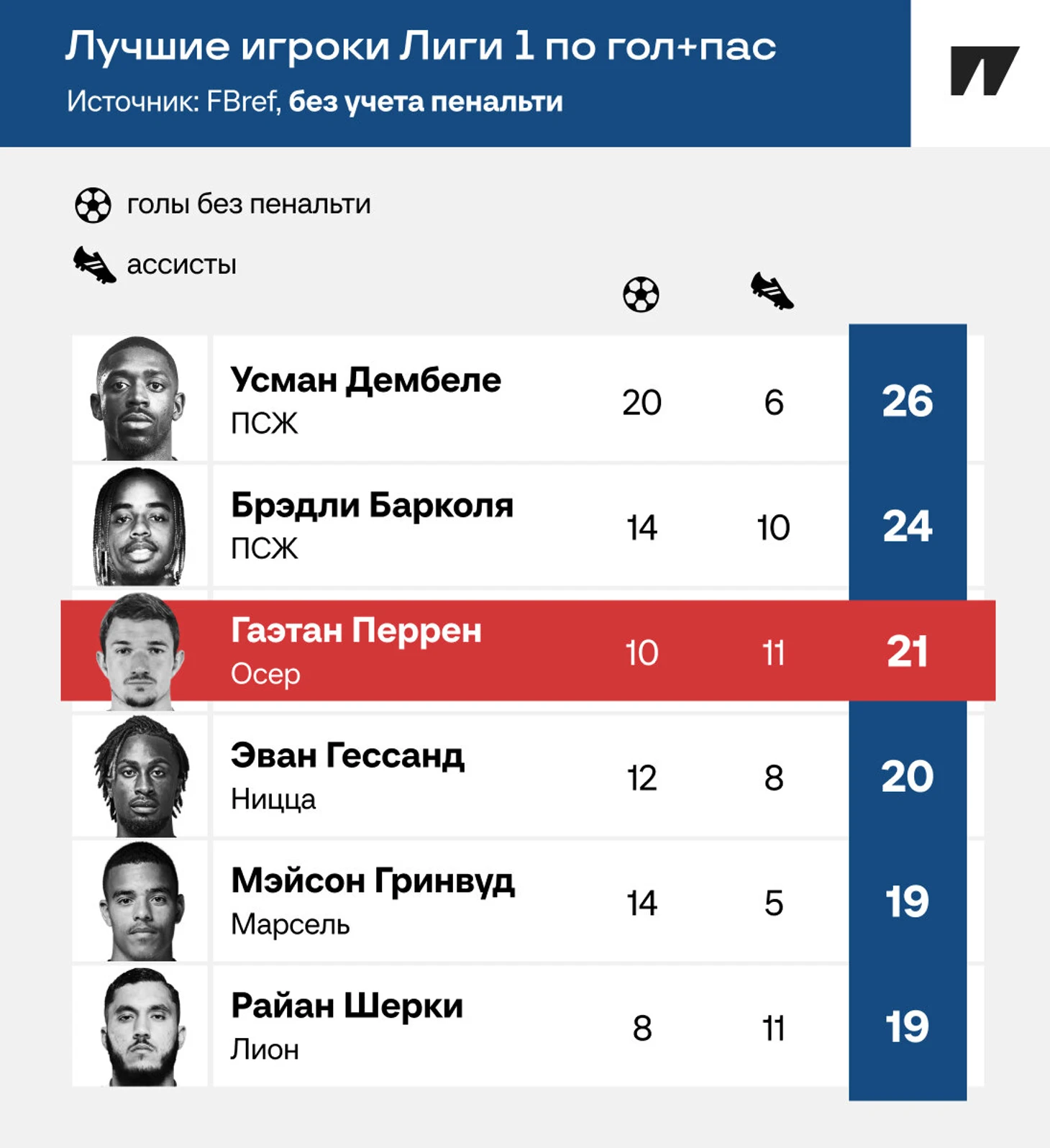 Сюрреалистично: Перрен, воспитанник «Лиона», к 29 годам провел лишь второй сезон в топ-дивизионе. До этого вместе с «Осером» выступил в Лиге 1-2022/23, набрал 3+1, был игроком ротации (15 матчей в старте, 22 выхода на замену). Гаэтан даже не всегда держался на уровне Лиги 2. Например, сезон-2020/21 провел в третьем по иерархии чемпионате Франции – ему уже было 24 года.